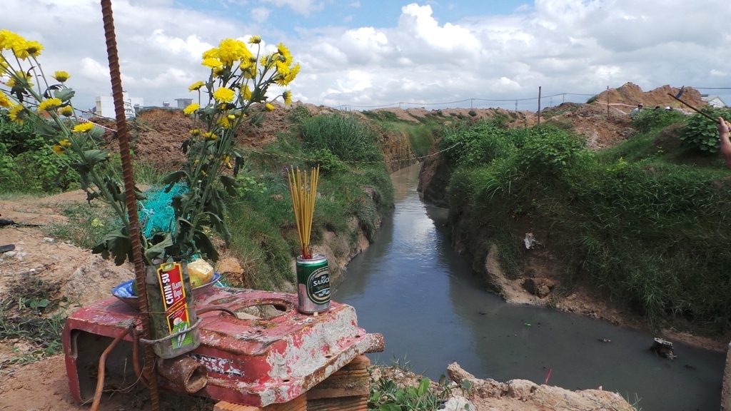Trong khi đó, ở cuối đường cống dài chừng 1 km, người nhà đã đặt bàn thờ cầu mong sớm tìm được thi thể nạn nhân. Lực lượng cứu hộ đã giăng lưới ở khu vực này.