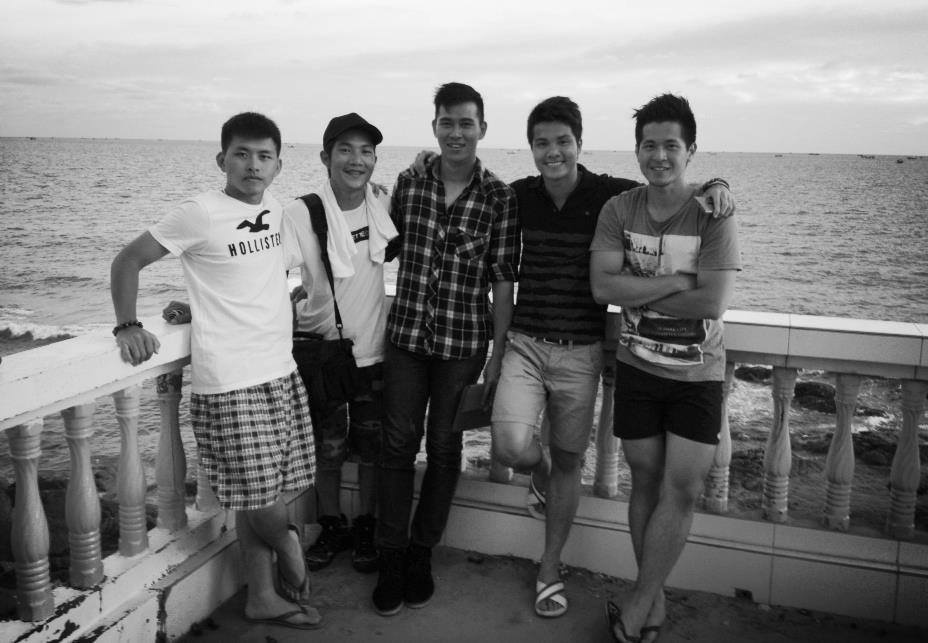 | Thanh Long (ngoài cùng bên trái) cùng các thí sinh trong một chuyến tham quan Nha Trang. |