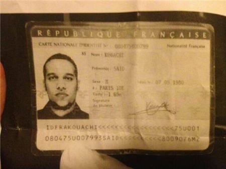 | Giấy tờ tùy thân mang tên Said Kouachi bị bỏ lại trên xe. Ảnh của cảnh sát Paris. |