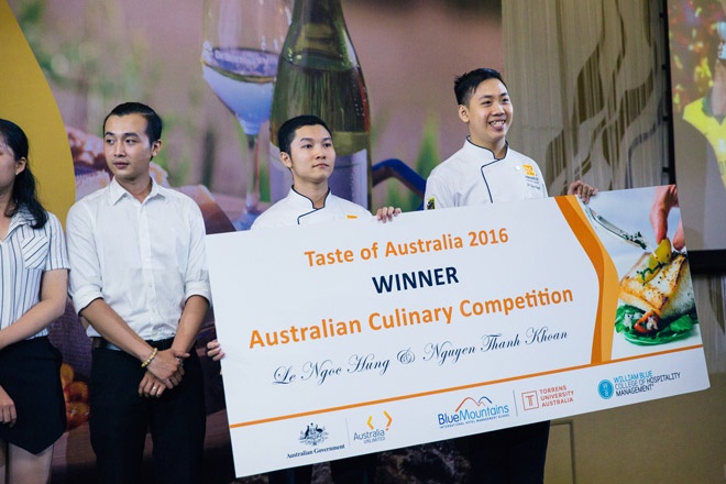 Ngọc Hưng và Thành Khoan - học viên khóa Bếp trưởng điều hành Hướng Nghiệp Á Âu trong cuộc thi Taste of Australia 2016. |