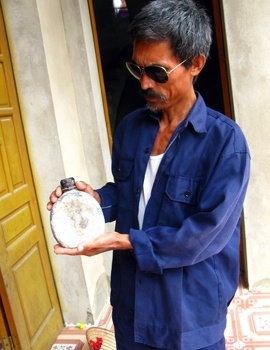 | Ông Mẫn Bá Tiện và chiếc bình tông mà ông Tiến đặt ra nhiều hoài nghi. |