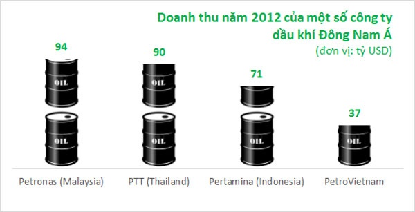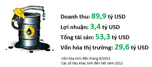 90 tỷ USD, gấp 2,4 lần so với doanh thu của PetroVietnam, tương đương 2/3 GDP của Việt Nam. Tại thị trường Thái Lan, PTT cũng là nhà bán lẻ xăng dầu lớn nhất với khoảng 40% thị phần.
