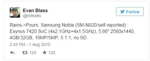 Theo nhiều nguồn tin, Samsung Galaxy Note 5 sẽ có RAM 4 GB, dung lượng lưu trữ lần lượt 32/64/128 GB kèm đồ họa Mali-T760.
