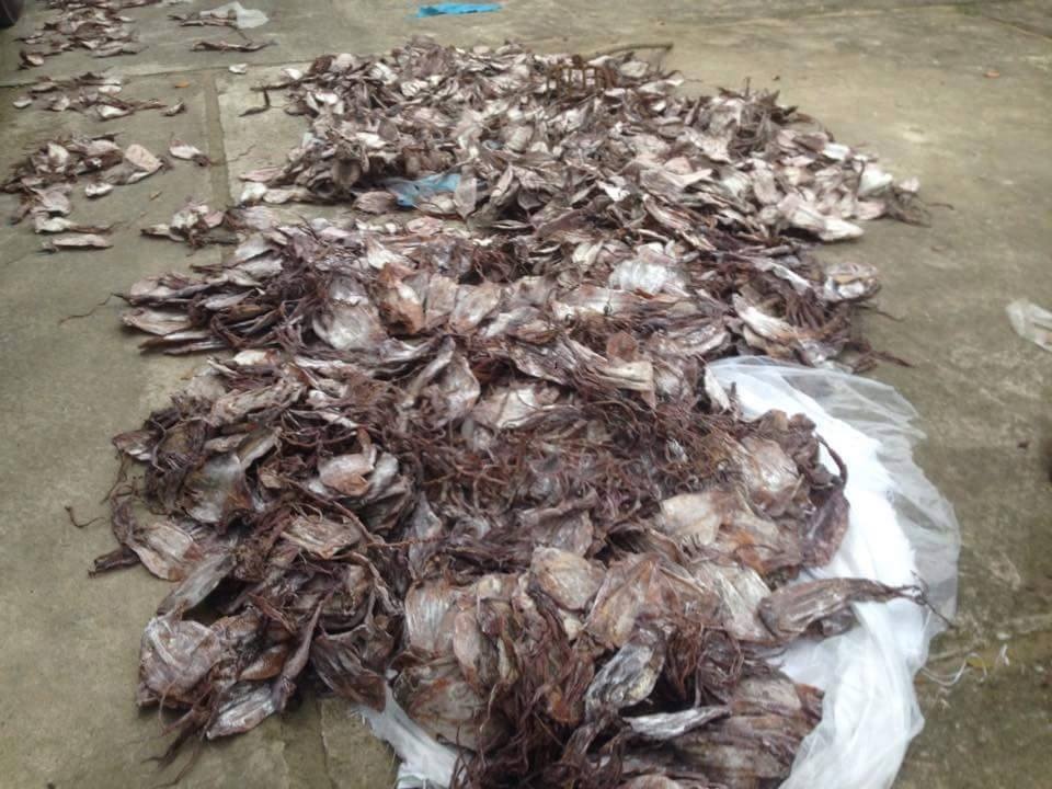 20 tấn mực đang trong giai đoạn phân hủy, bốc mùi thối. Ảnh: P.T. |