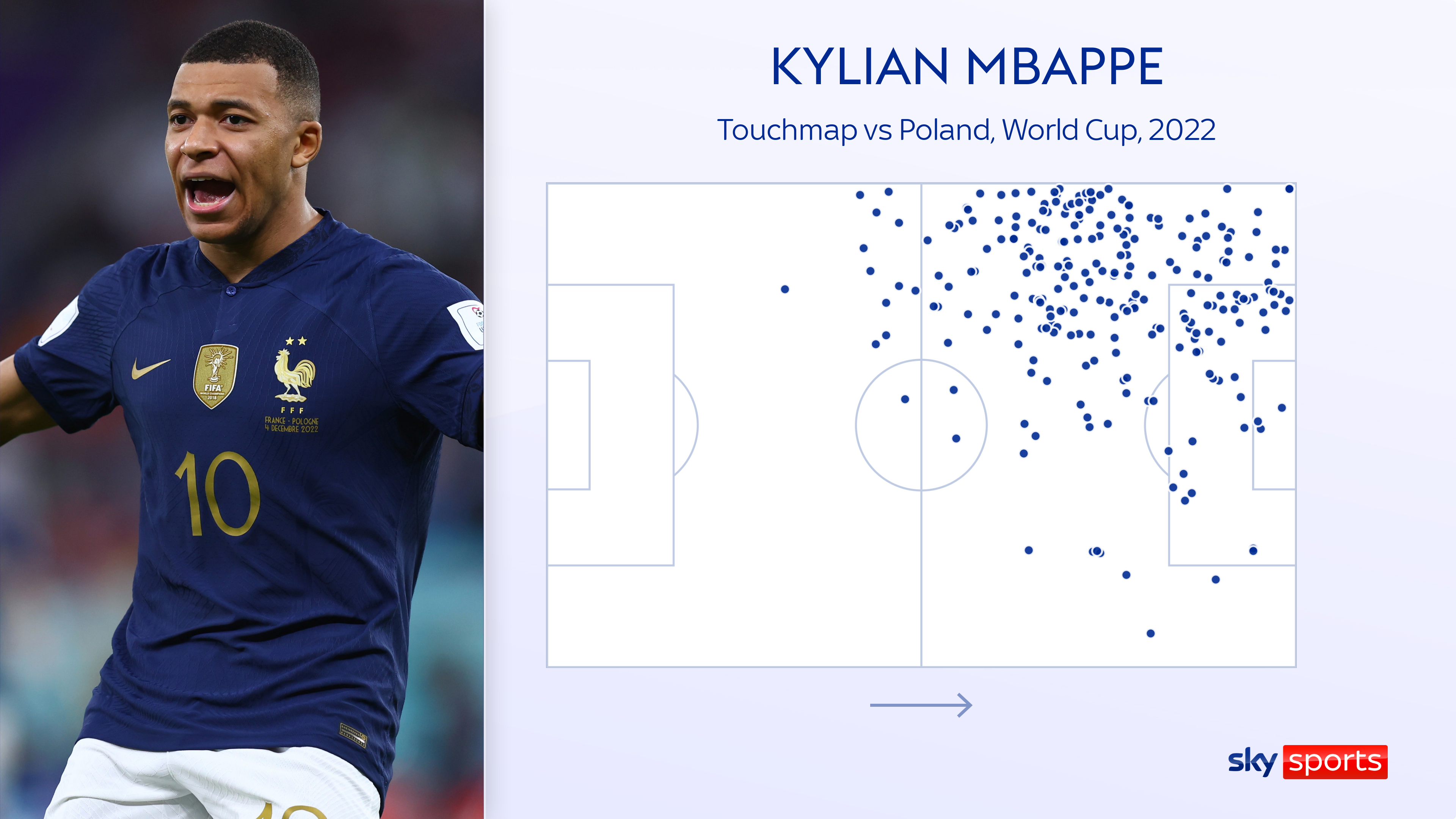 | Phạm vi hoạt động của Mbappe trước Ba Lan. Ảnh: Sky Sports. |