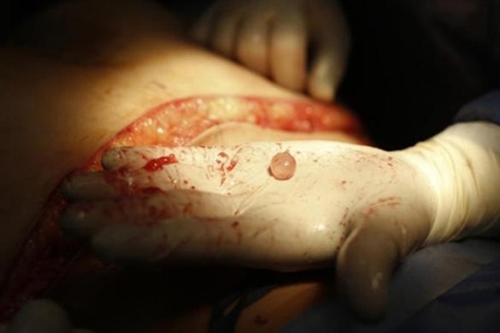 | Cận cảnh một hạt silicon vừa được bác sĩ lấy ra khỏi mông một bệnh nhân. |