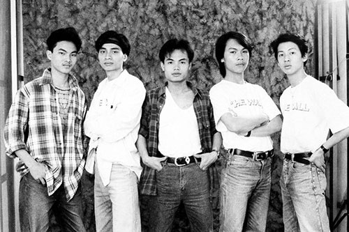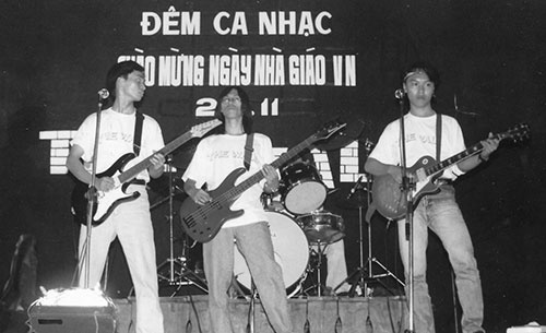 | Các thành viên của nhóm Bức Tường ngày mới thành lập: ca sĩ/nhạc sĩ Trần Lập và 2 guitar là Trần Tuấn Hùng, Nguyễn Hoàng. |