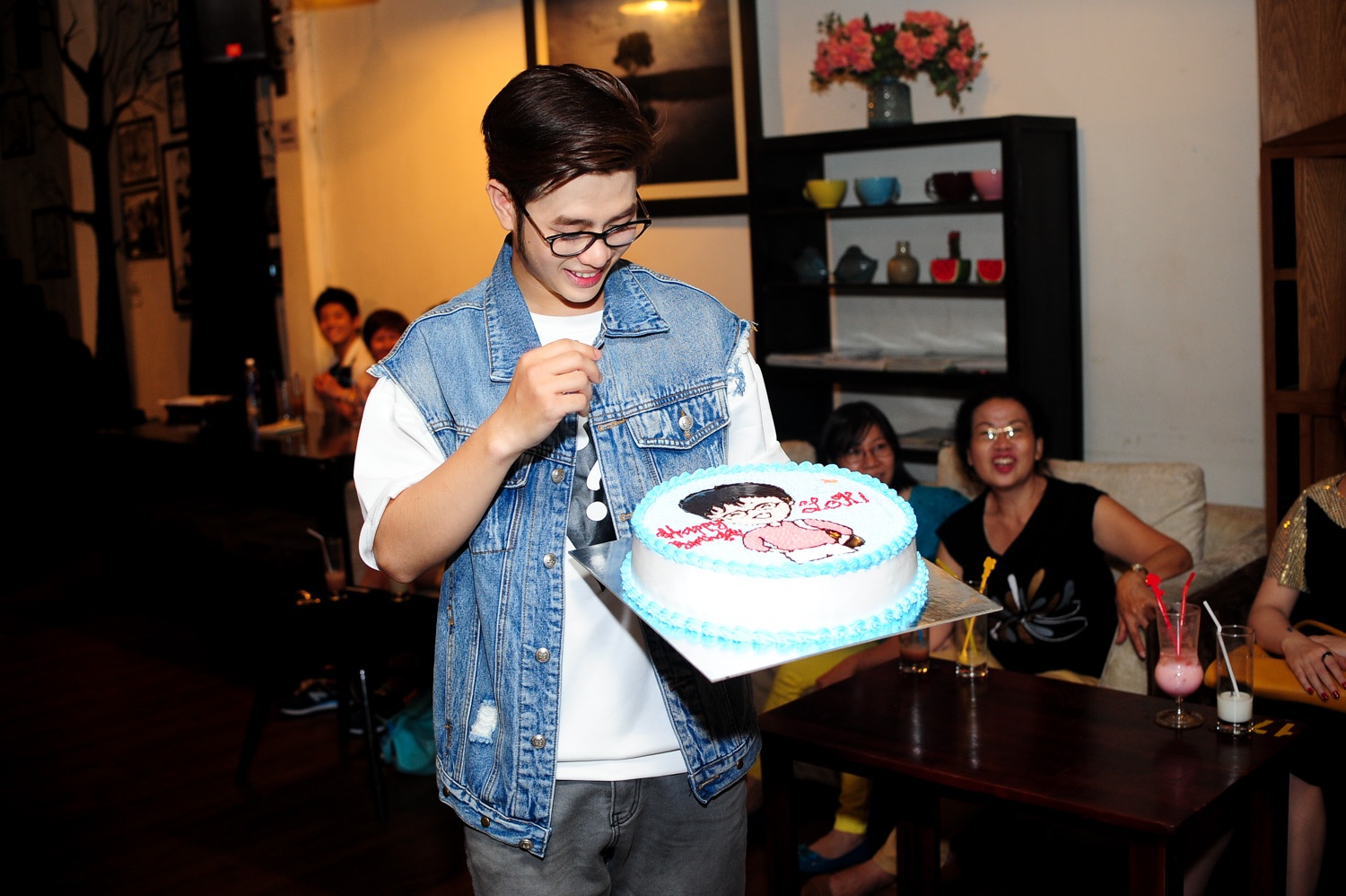 Nhân buổi offline cũng trùng thời điểm với dịp sinh nhật lần thứ 21 (vào cuối tháng 7) của hot boy X Factor, các fan đã tặng anh bánh sinh nhật kèm những lời chúc may mắn tại cuộc thi âm nhạc đang diễn ra.