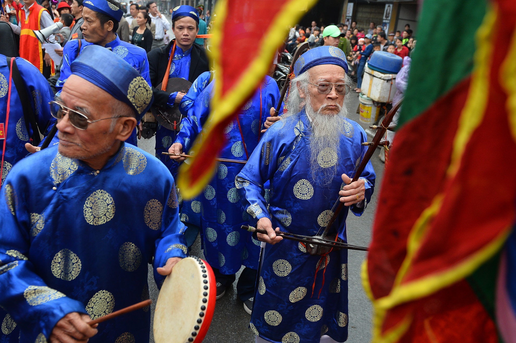 | Mỗi chặng chừng 20 m đoàn lại dừng chân và hô vang đôi ba lần làm sôi động không khí lễ hội. |