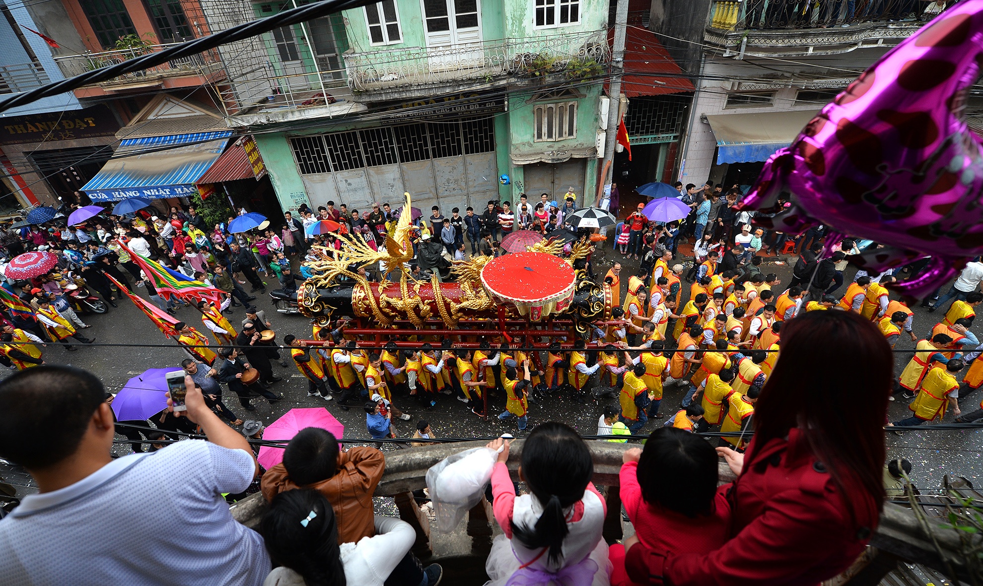 | Những ban công bên đường thành nơi lý tưởng để ngắm pháo. |
