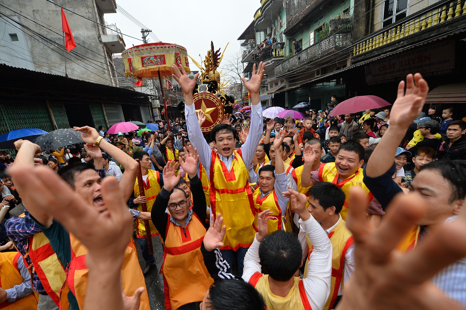 Do không được đốt pháo như trước đây nên đoàn rước đã thay thế bằng cách đồng thanh hô vang kèm theo tràng vỗ tay lớn tạo tiếng nổ.