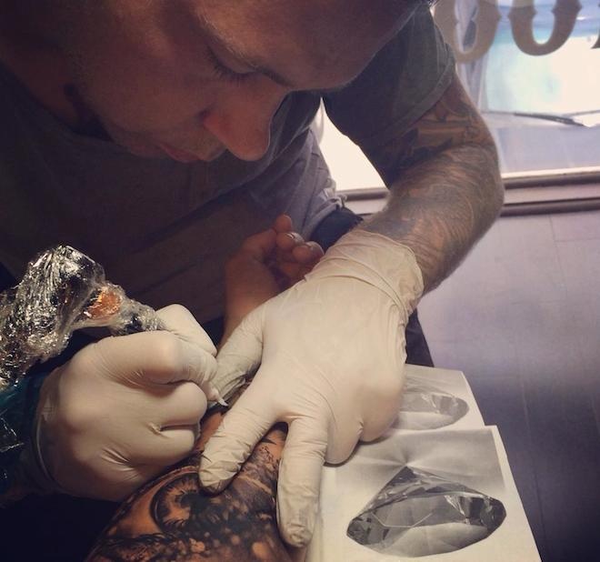 | Niki cho biết, anh có kha khá kinh nghiệm trong lĩnh vực này. Niki bắt đầu theo nghiệp xăm mình từ năm 2001. |