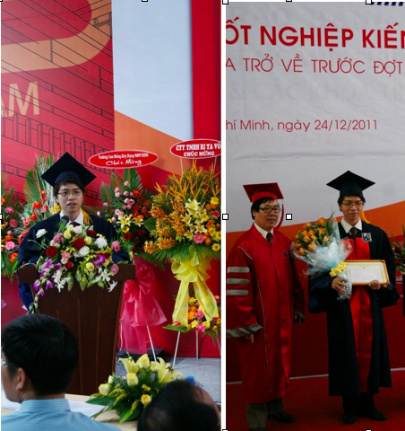 | Võ Phi Nhật Huy nhận bằng khen Thủ Khoa và đọc diễn văn ra trường ngày tốt nghiệp . |