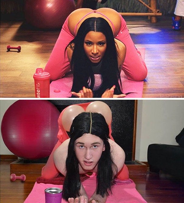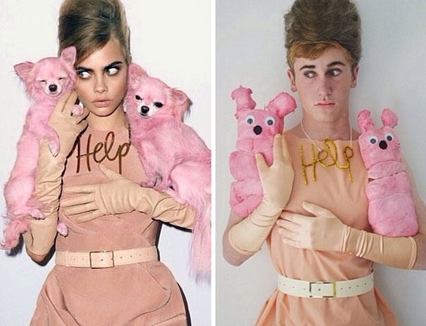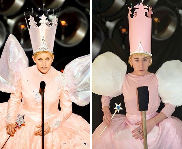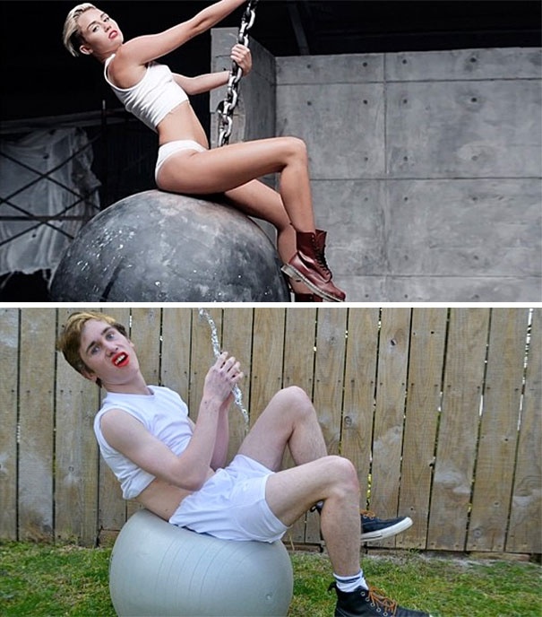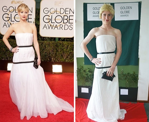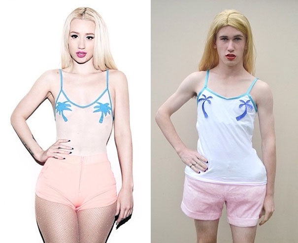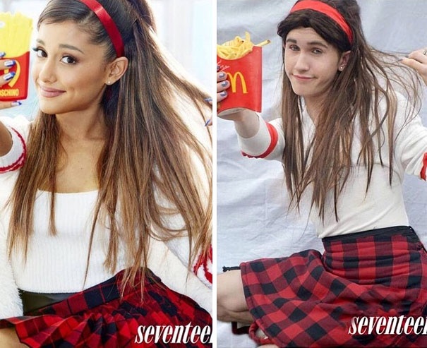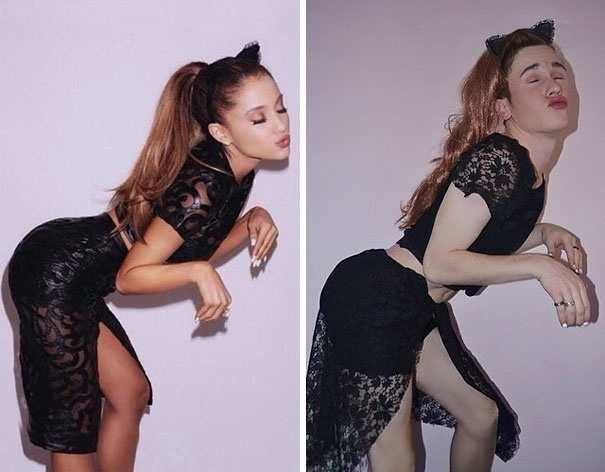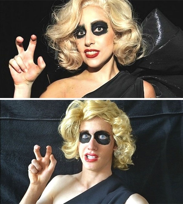 | Chàng trai này tên Liam Martin, 17 tuổi, có tới 1,8 triệu người theo trên Instagram. Anh gây sốc khi hóa trang rất giống những sao nữ nổi tiếng trên thế giới từ cách trang điểm, trang phục đến biểu cảm khuôn mặt như Lady Gaga, Angelina Jolie, Miley Cyrus... Đặc biệt, những sáng tạo ấy lại được làm từ những thứ rất đơn giản như túi rác và các mặt hàng thực phẩm có giá thành rẻ. |