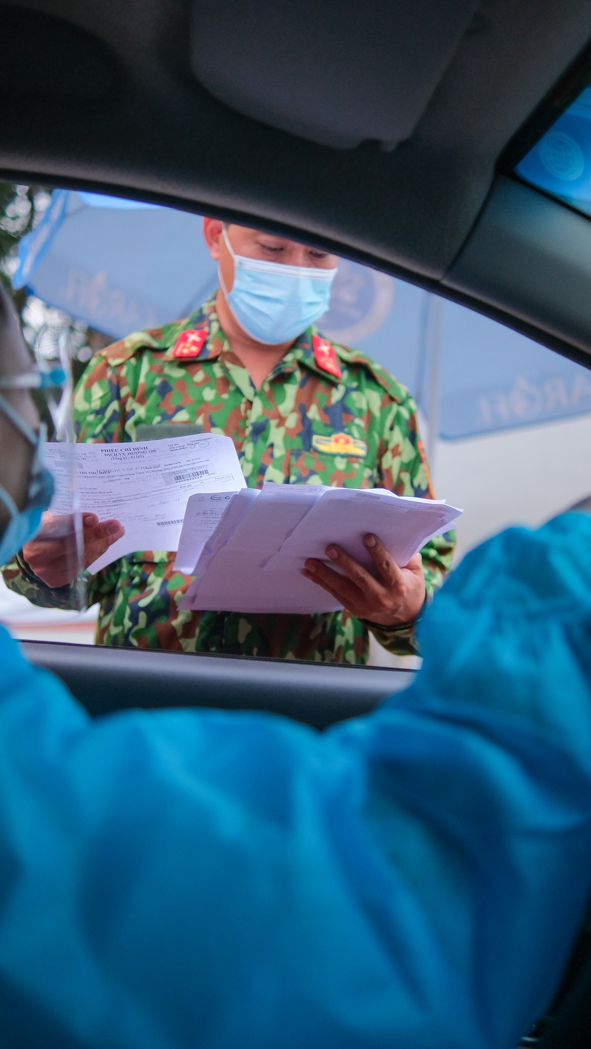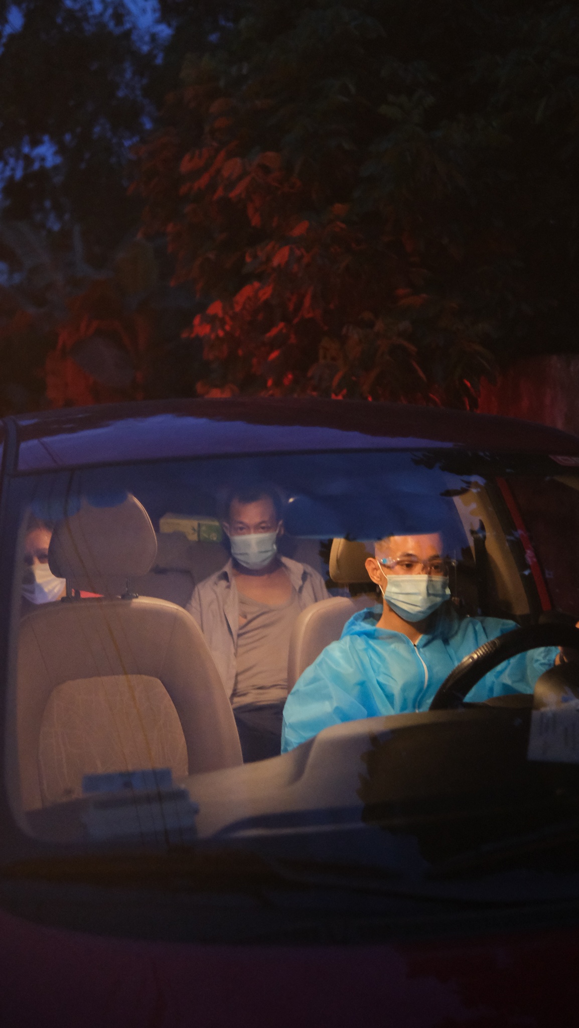 | Vì có giấy xét nghiệm Covid-19 nên khi có thời gian, tôi chở bệnh nhân về tận nhà. Hôm nay là một ngày như thế. Trên đường đi sang địa phận tỉnh Hà Nam, tôi và mọi người trên xe phải xuống khai báo y tế. |