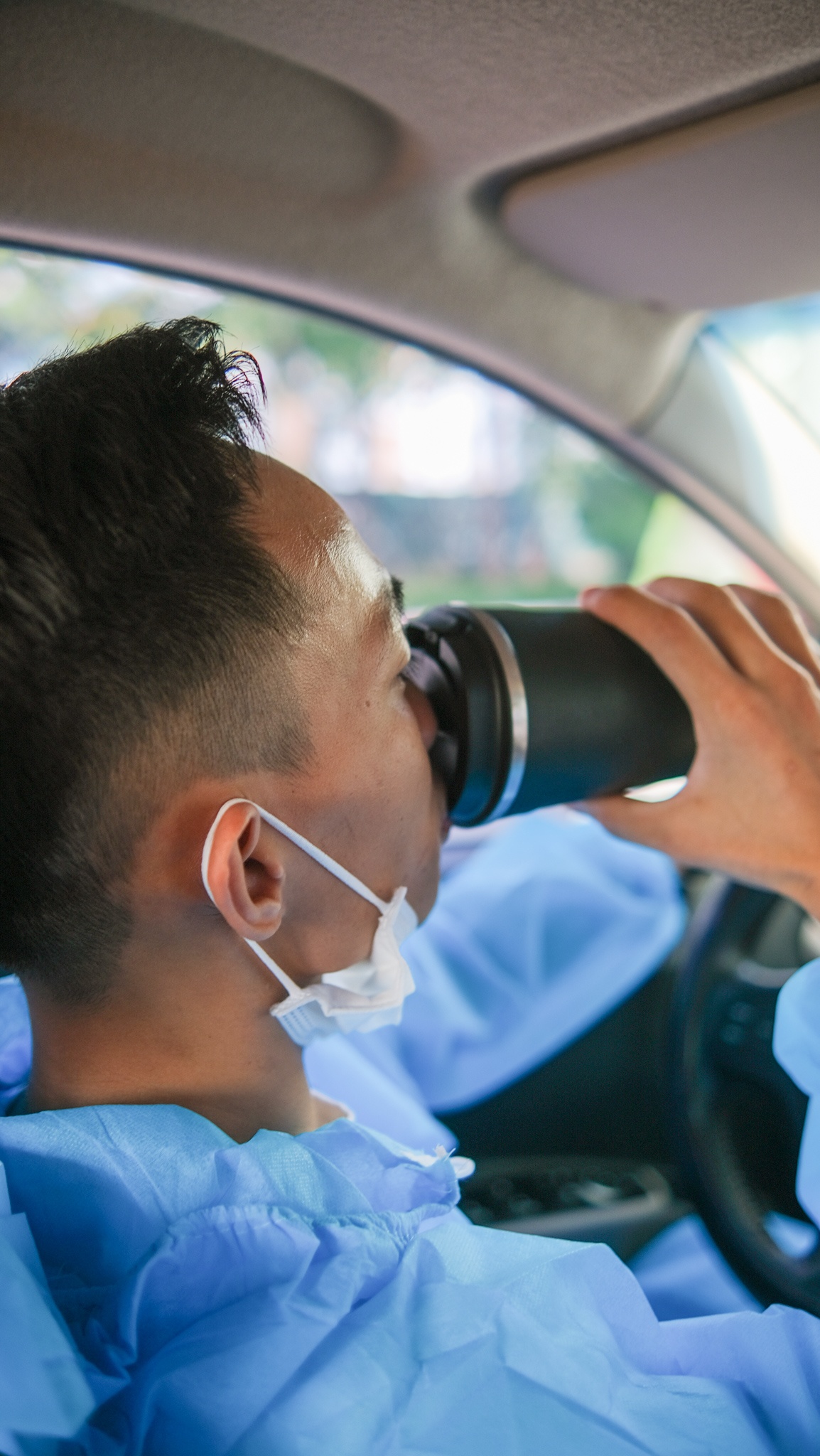 | Trước khi đi, tôi kiểm tra lại đồ bảo hộ, khẩu trang, nước xịt khuẩn tay và nước súc miệng chuyên dụng. Đây là những vật dụng không thể thiếu trong mỗi chuyến đi. Đặc biệt là nước súc miệng, ngoài giúp diệt khuẩn, ngăn ngừa virus tấn công, Listerine còn hỗ trợ tôi giữ vệ sinh khoang miệng suốt ngày dài, khiến tôi yên tâm hơn khi làm việc. |