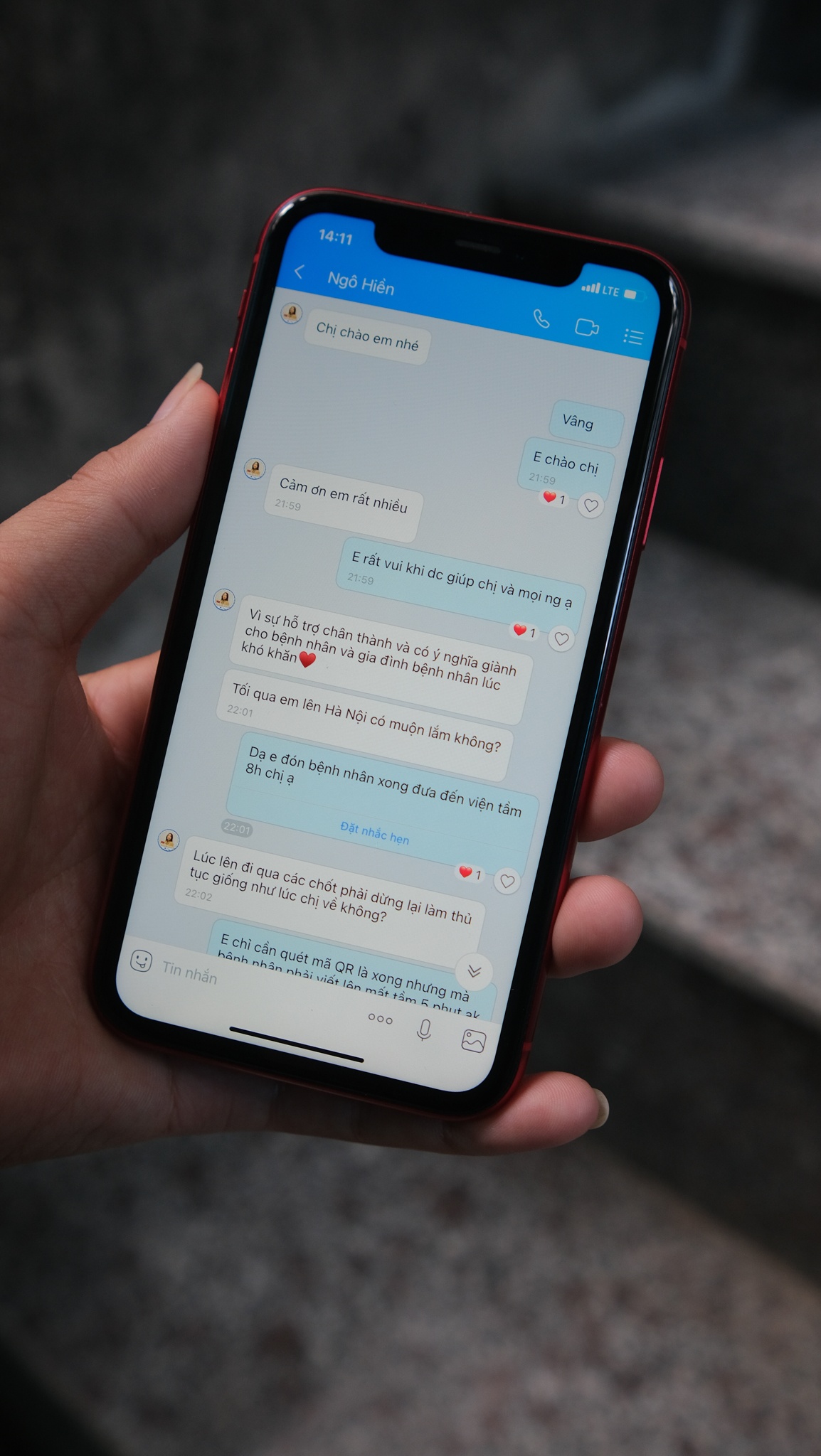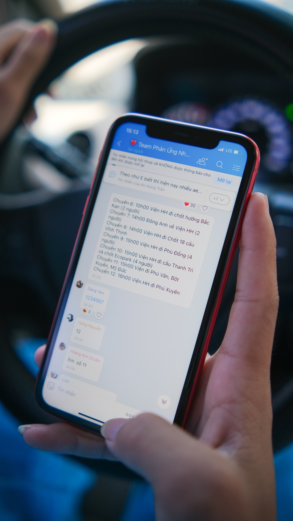 | Lúc này, trưởng nhóm nhắn tin thông báo về các chuyến hỗ trợ ngày hôm sau. Tôi nhanh chóng chọn một cuốc xe và ấn trả lời. |