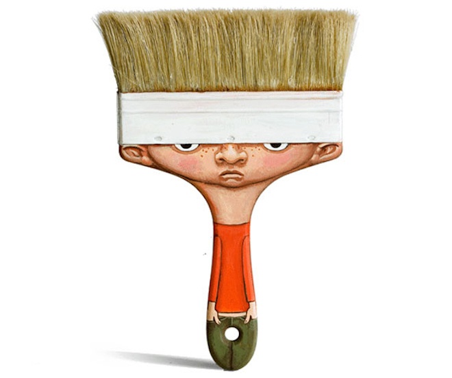| Cậu bé tóc dựng được làm từ chổi quét sơn. |