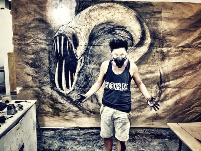 | Với việc dùng than, sơn acrylic, phấn pastel... anh đã khiến người xem thực sự choáng ngợp. Mỗi bức tranh đều hoành tráng, đẹp đến từng chi tiết và đặc biệt là hết sức sống động. |