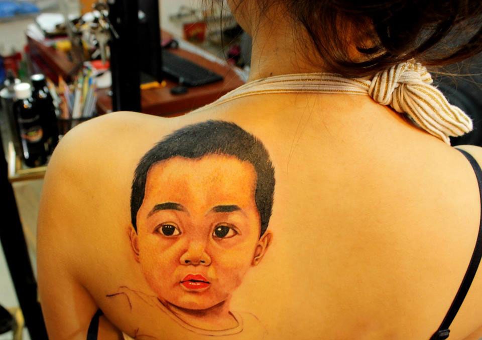 Phác họa chân dung người thân lên cơ thể cũng đang là trào lưu trong giới xăm nghệ thuật.