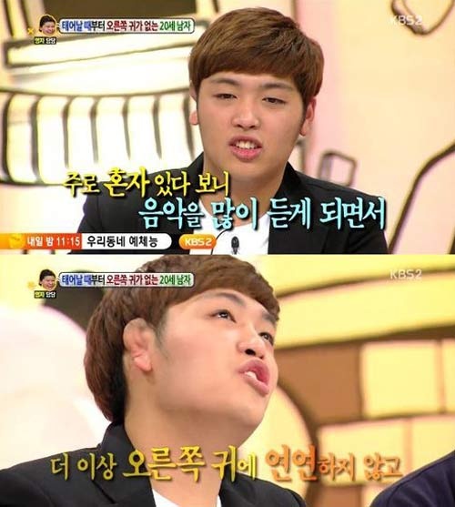 Các khách mời của chương trình và khán giả trường quay đều tỏ ra đồng cảm và vỗ tay ủng hộ chàng trai này. Anh tâm sự: “Từ khi sinh ra tôi đã không có một bên tai phải vì dị tật bẩm sinh”.