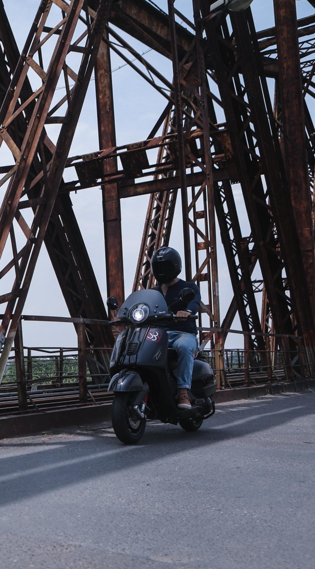 | Hết giờ ghi hình, tôi đi qua cầu Long Biên để trở về. Giữa trưa đường khá vắng, tôi có thể ngắm nhìn trọn vẹn hình ảnh cây cầu trăm tuổi vắt qua sông Hồng nên thơ. |
