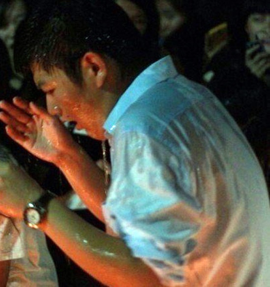 | Khi chàng trai đang rất hồi hộp chờ đợi nữ nhân vật chính xuất hiện thì cô gái lại tỏ thái độ rất dửng dưng. Đột nhiên, cô gái tạt thẳng vào đầu và mặt chàng trai một xô nước lạnh khiến chàng trai bị ướt sũng từ đầu đến chân. Ai nấy đều sững sờ, hoa bị dập và nến nằm lăn lóc. |