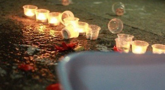 | Hoa bị dập và nến nằm lăn lóc sau vụ tạt nước. |