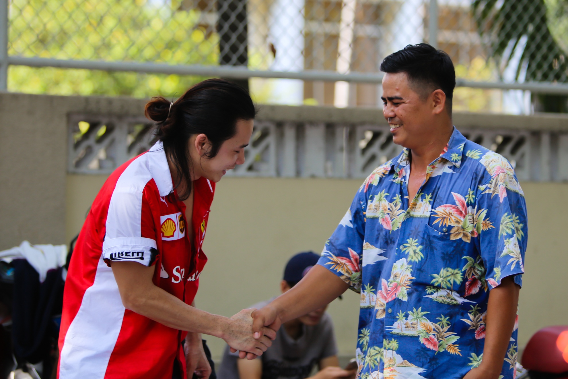 Anh Hoàng Lê Giang (28 tuổi) chia sẻ, rất hài lòng với mái tóc mới. Biết anh Tuấn qua bạn bè nên anh đã tham gia và cùng giúp đỡ người thợ cạo trong công việc chuẩn bị và sắp xếp.