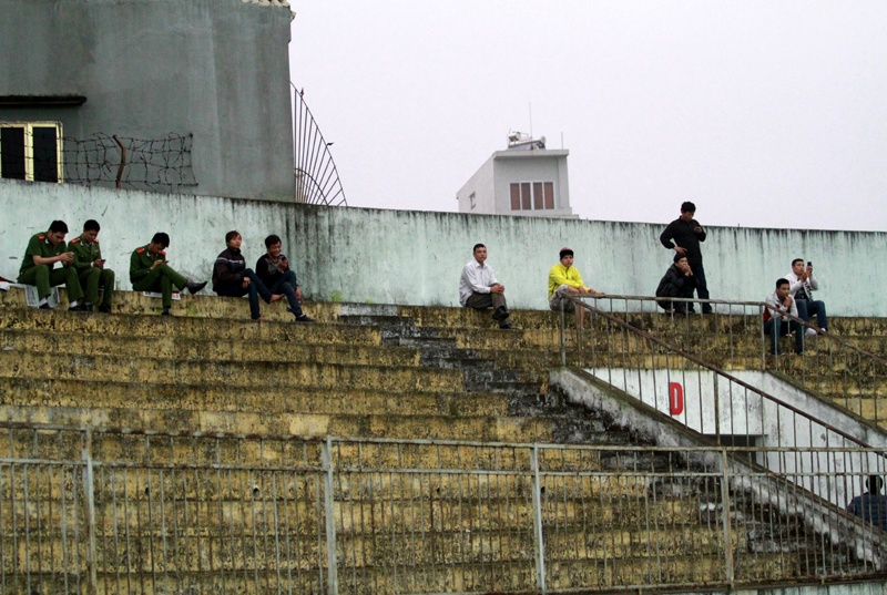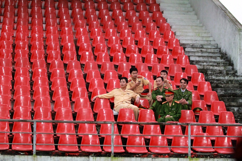 CĐV ít, lực lượng an ninh được thảnh thơi ngồi nghỉ.