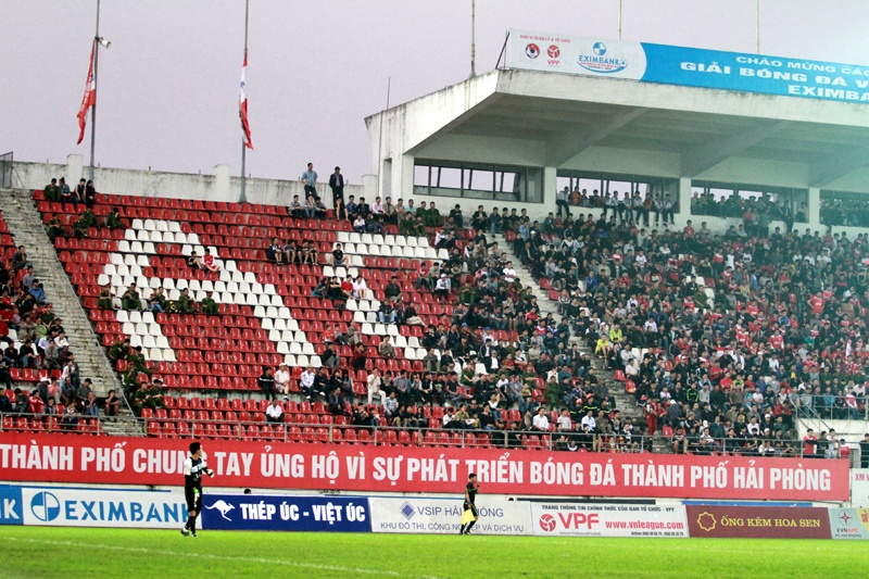 Không khí tại Lạch Tray bớt sôi động do khán đài còn quá nhiều chỗ trống. Đặc biệt, khi trận đấu giữa Hải Phòng và HAGL đang diễn ra, sân bóng này còn xảy ra sự cố mất điện.