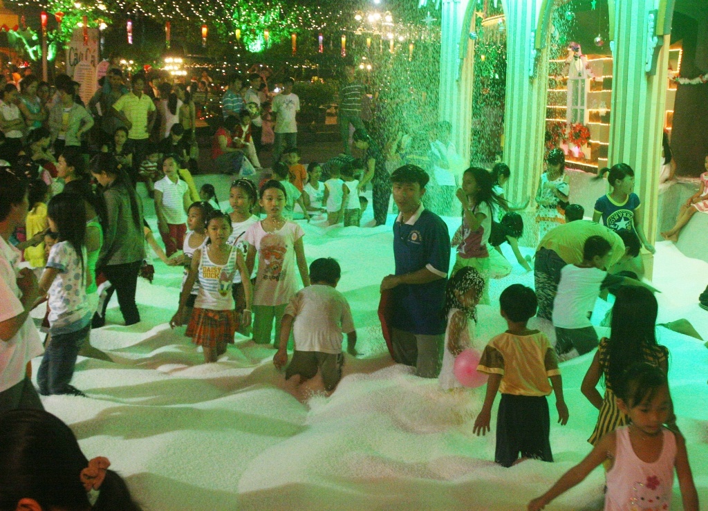 Cả khu du lịch được trang hoàng lộng lẫy, những tiểu cảnh lung linh huyền ảo dưới hàng triệu ánh đèn sao, trải dài từ cổng Thiên Tiên Môn đến các cung đường lễ hội. Đến Lâu đài tuyết dưới nhiệt độ âm 15oC, các em sẽ vui đùa trên những con dốc đầy tuyết và chạm vào những bông hoa tuyết.