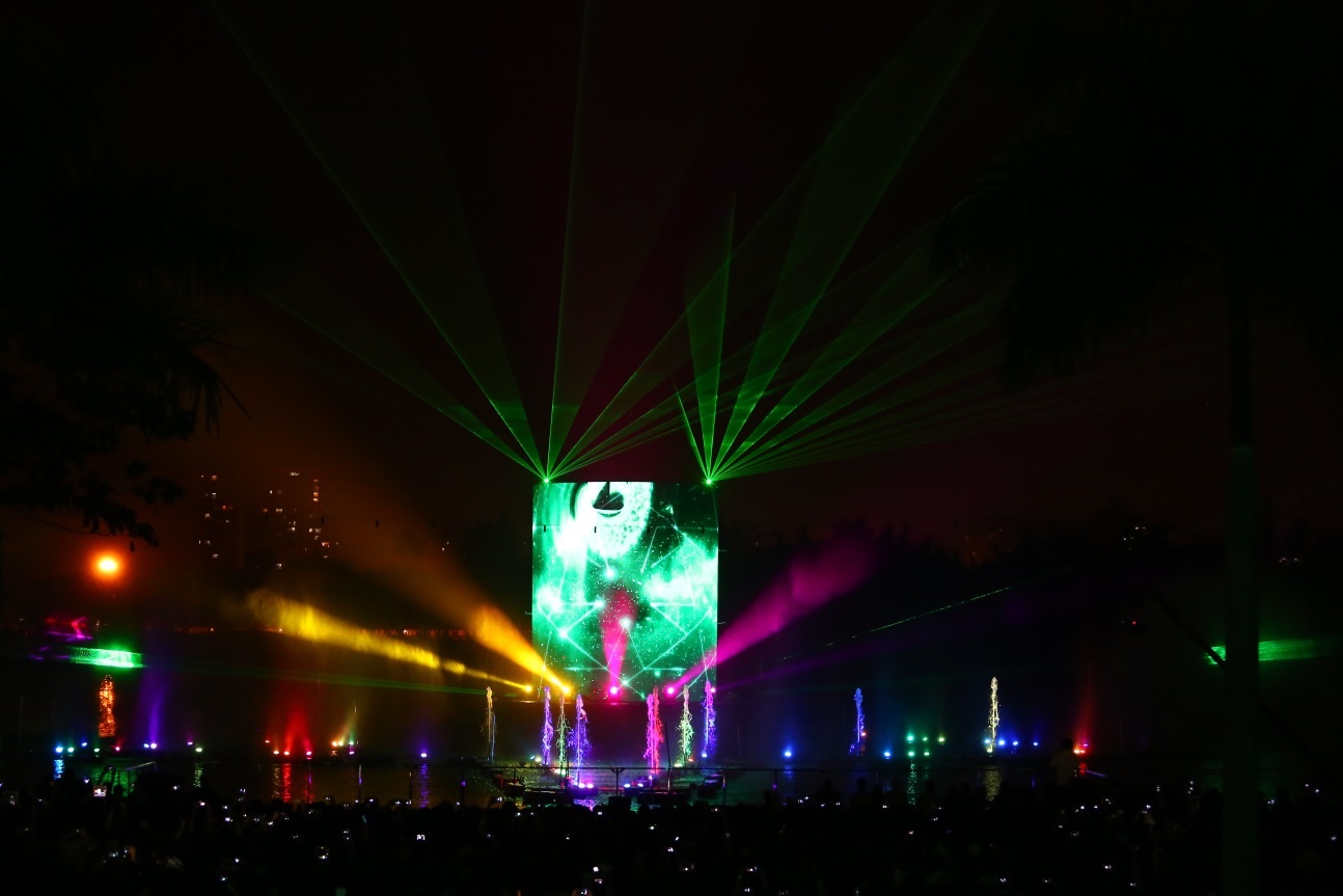| Hồ Bán Nguyệt lung linh trong lễ hội đa sắc màu. Không gian sự kiện huyền ảo với nghệ thuật ánh sáng laser đẳng cấp thế giới kết hợp âm nhạc đỉnh cao. |
