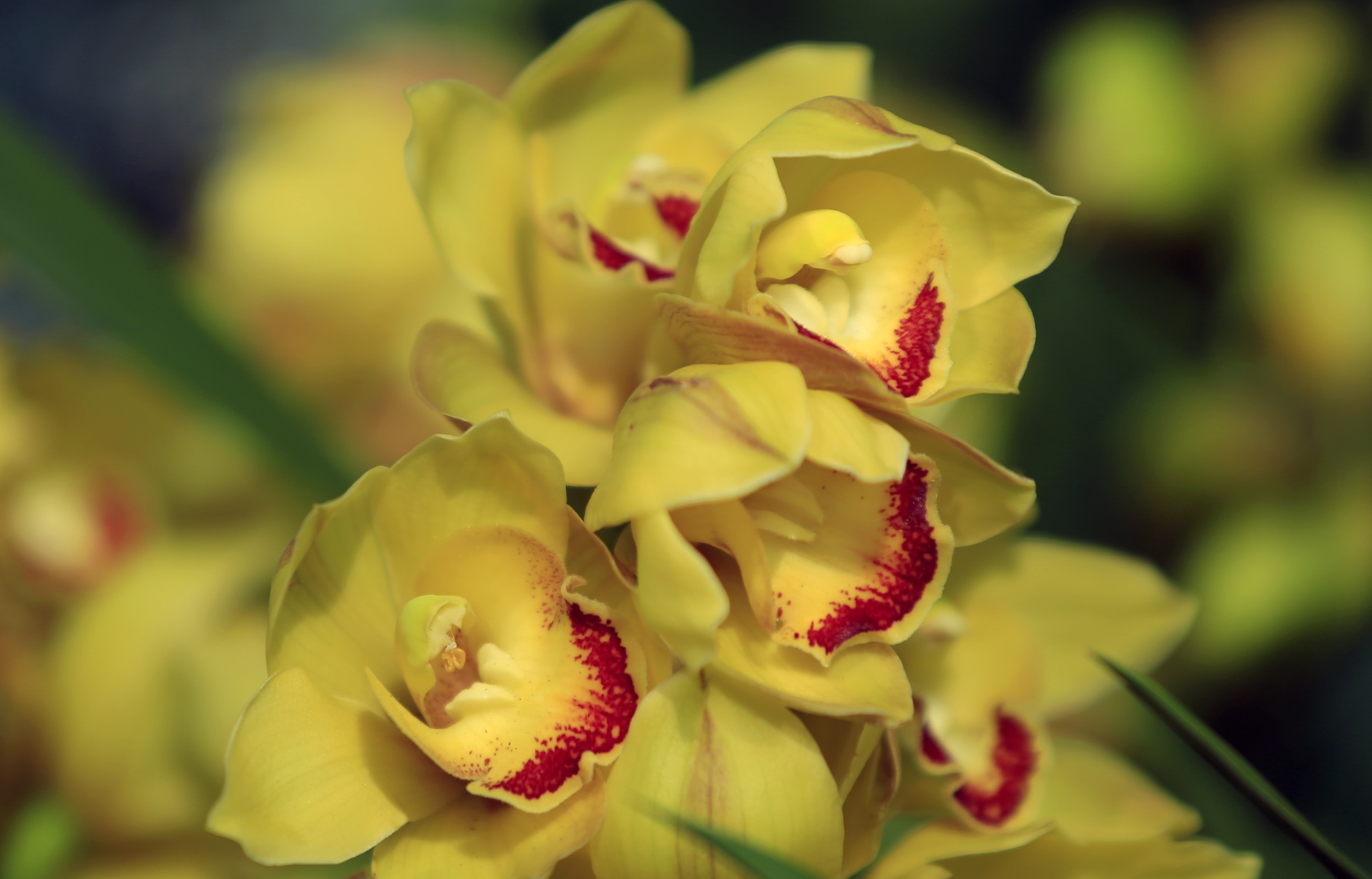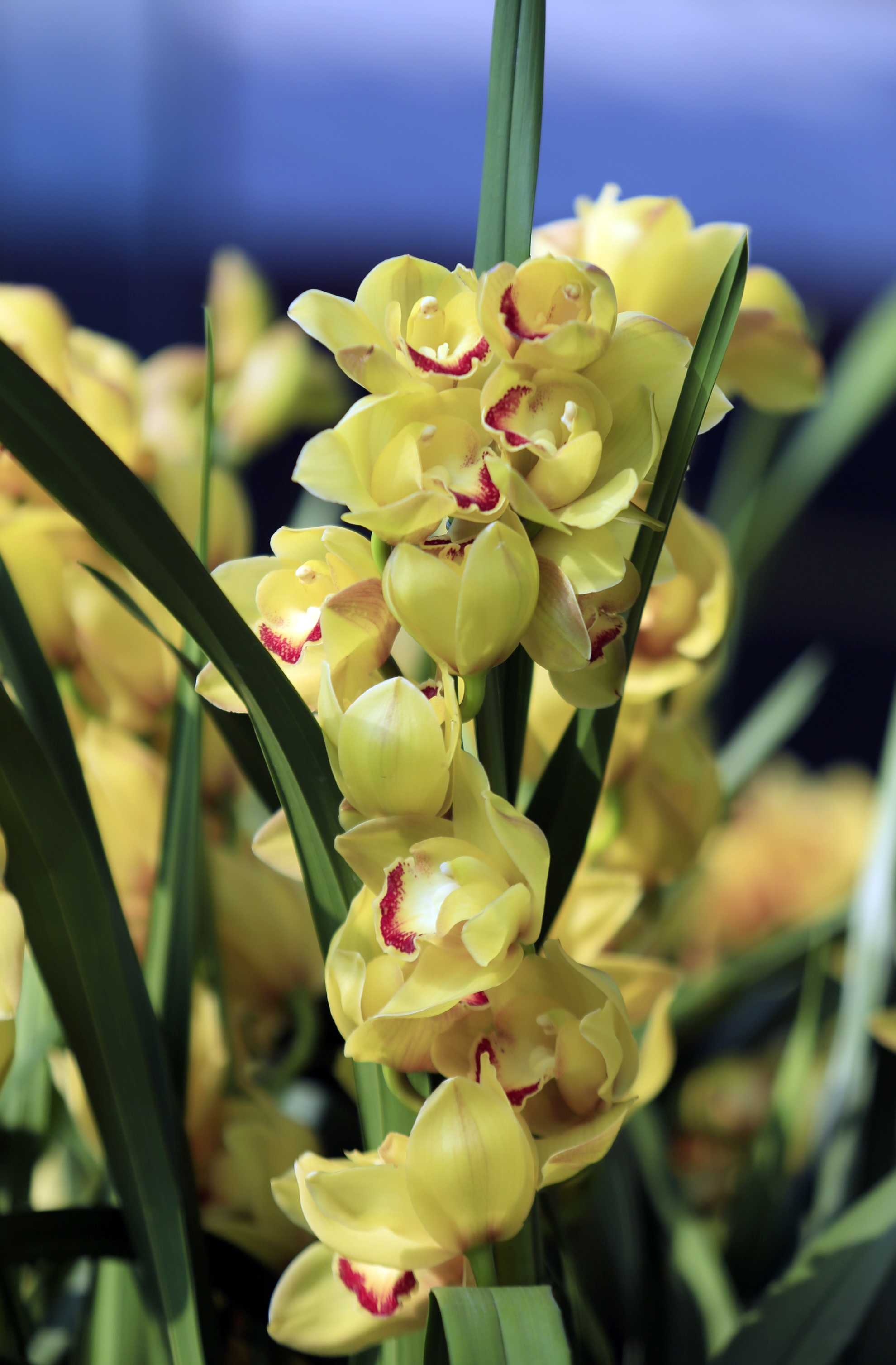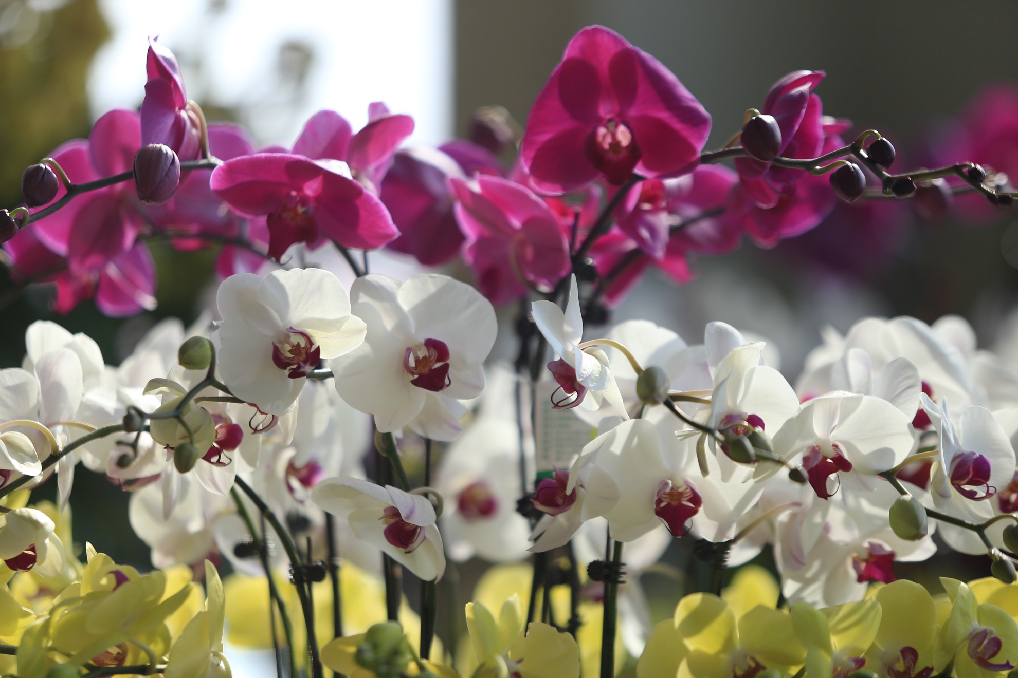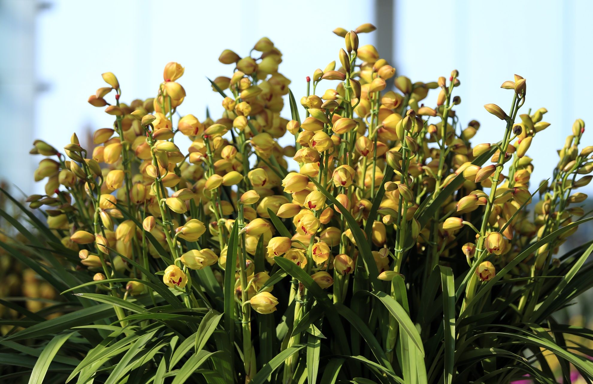 | Hàng trăm cành địa lan cùng khoe sắc. |