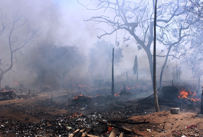 Tuy nhiên do khu vực trên chứa nhiều rác và cỏ khô mọc xung quanh nên ngọn lửa nhanh chóng bùng lên, công tác chữa cháy tại chỗ bất thành. Ngọn lửa lan sang 5 nhà dân gần đó khiến nhiều người không kịp dời tài sản.