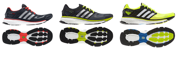 Sản phẩm đại diện cho dòng giày chạy bộ chuyên dụng Boost của adidas có thể kể đến Energy Boost. Với thiết kế năng động, mạnh mẽ, màu sắc nổi bật (có 3 màu: màu đen viền đỏ, màu đen viền xanh và màu xanh lá cây dạ quang) và không kém phần thời thượng, phù hợp với nhiều đối tượng khác nhau, sản phẩm giúp bạn trông thật sự “chất” và tràn đầy sức sống khi tập luyện chạy bộ.
