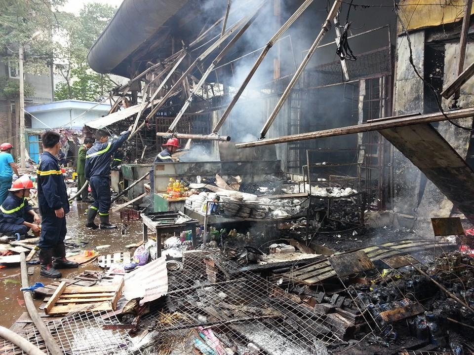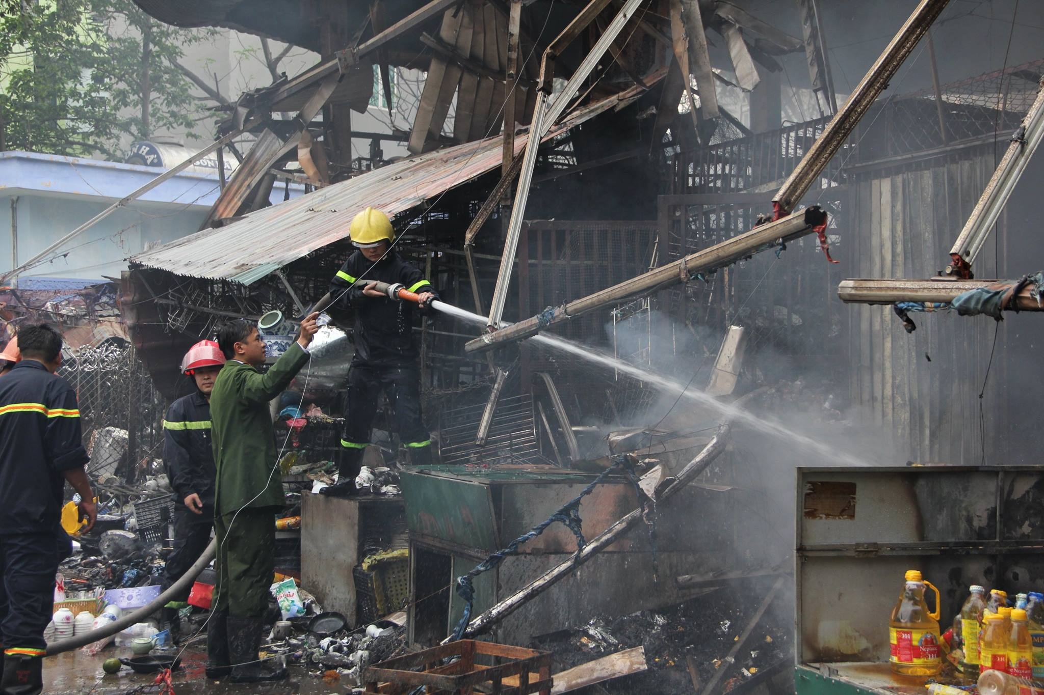 | Trực tiếp có mặt chỉ huy, đại tá Tô Xuân Thiều, Phó giám đốc Cảnh sát PCCC Hà Nội cho hay, đơn vị đã huy động 16 xe cứu hỏa và xe tiếp nước các loại với tổng số hơn 100 chiến sĩ tới hiện trường. Ngoài ra, lực lượng dân quân tự vệ các phường lân cận cũng được huy động hỗ trợ phong tỏa hiện trường. Thiệt hại ban đầu ước tính hàng chục tỷ đồng. |