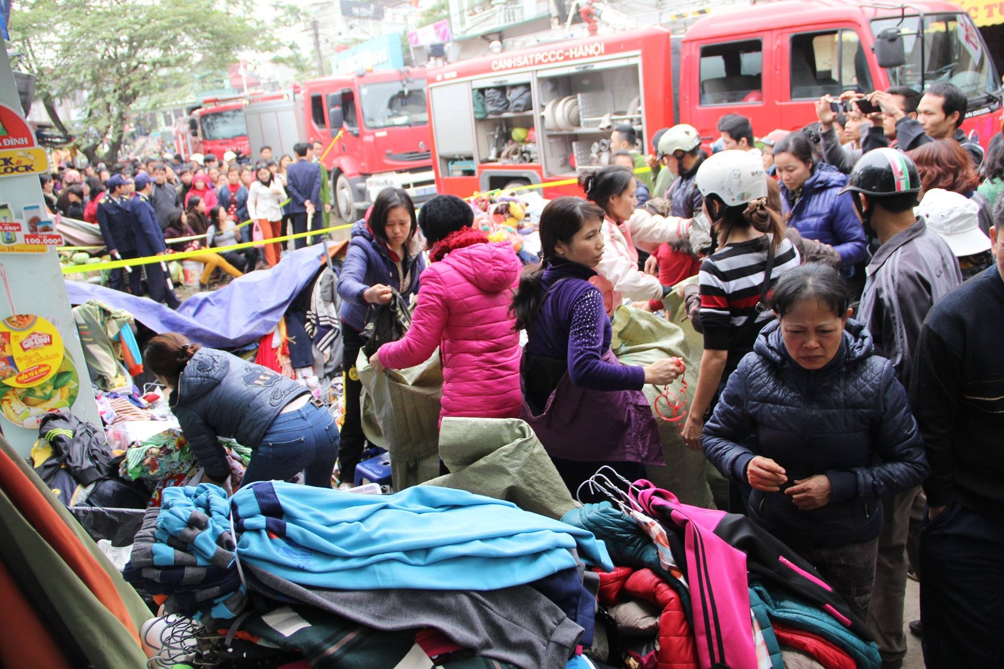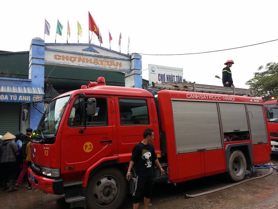 Theo ghi nhận, khoảng 10 xe cứu hỏa cùng hàng chục lính cứu hỏa đã được điều đến hiện trường. Làn đường sát với chợ (hướng ra cầu Thăng Long) bị phong tỏa.