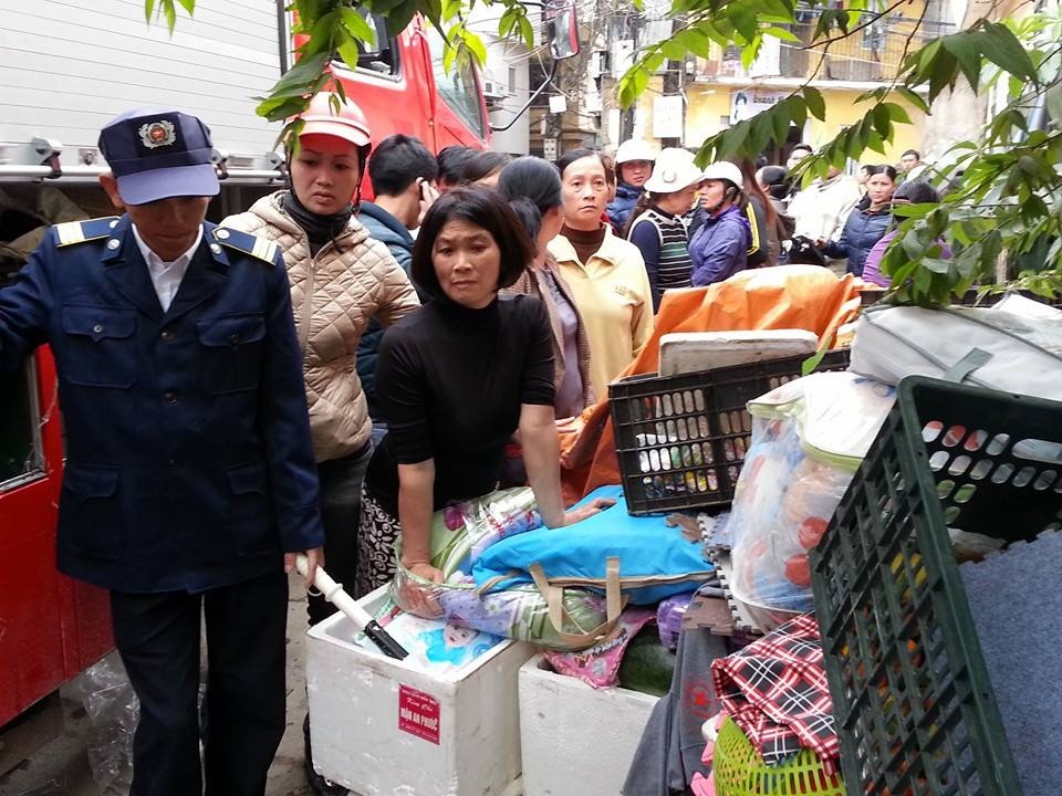 | Bên ngoài, hàng chục tiểu thương nóng ruột chờ vào kiểm kê hàng hóa. |