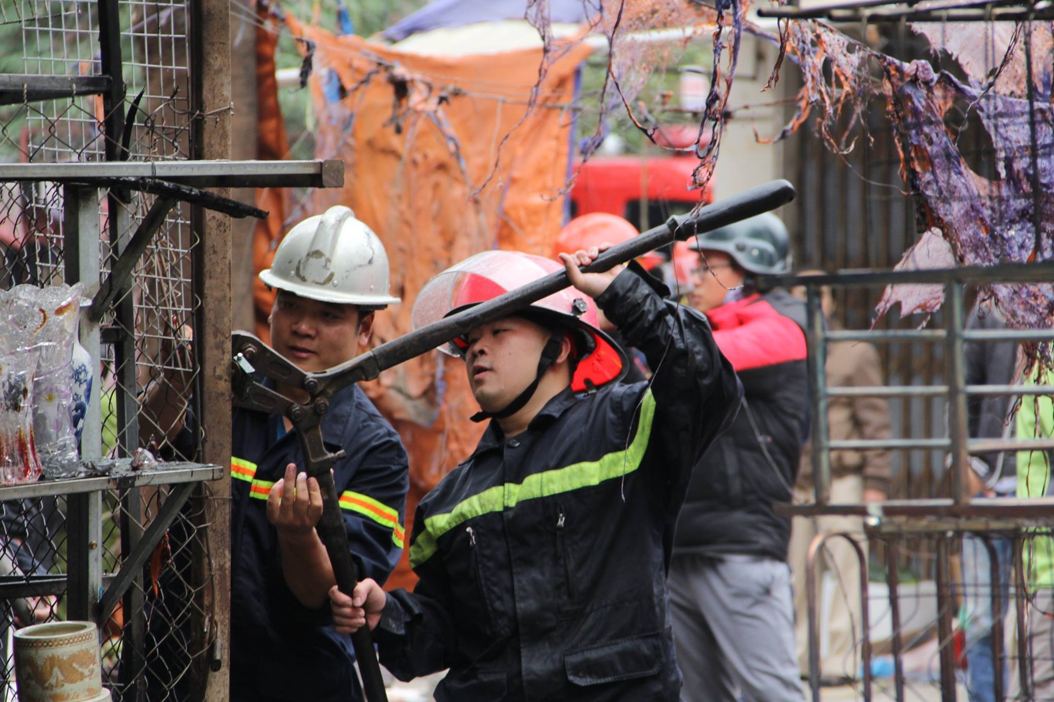 | Dùng kềm phá khóa để cứu nhiều hàng hóa của tiểu thương. |