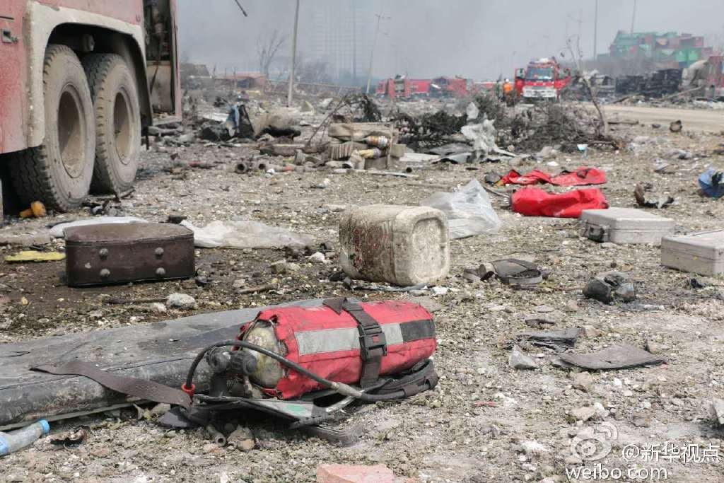 Bình dưỡng khí của lính cứu hỏa tại hiện trường. Ảnh: Weibo |