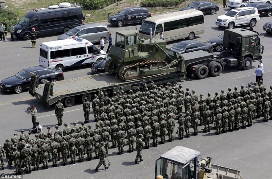 Binh sĩ và phương tiện của quân đội tham gia công tác cứu nạn. Ảnh: Reuters |