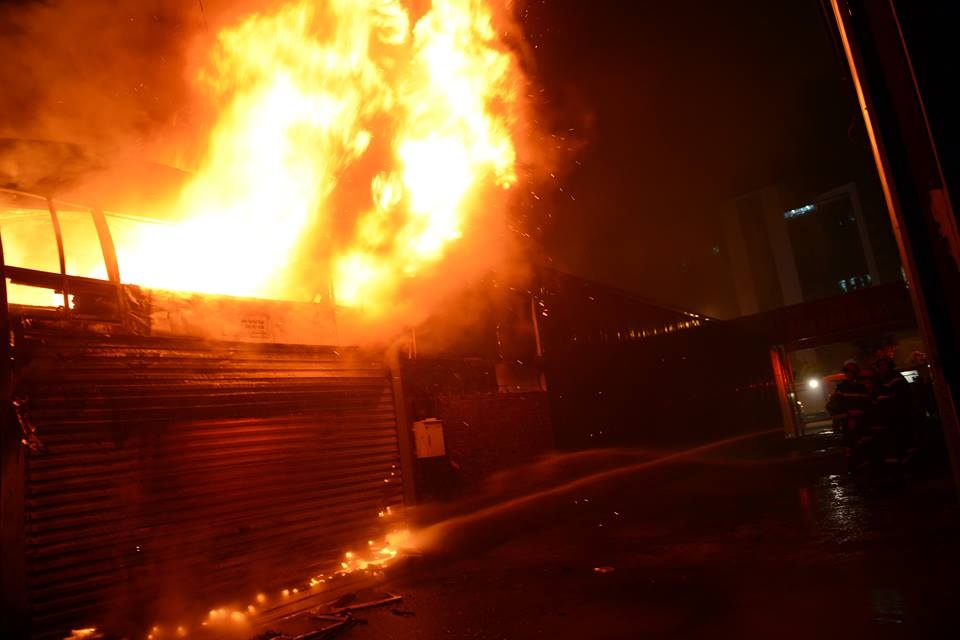 Đám cháy bùng phát tại khu đô thị Nam Trung Yên (Hà Nội) vào khoảng 22h, tại khu vực tập trung nhiều cửa hàng ăn uống và garage ôtô rộng hàng trăm m2, cạnh tòa nhà Keangnam. Ảnh: otofun.