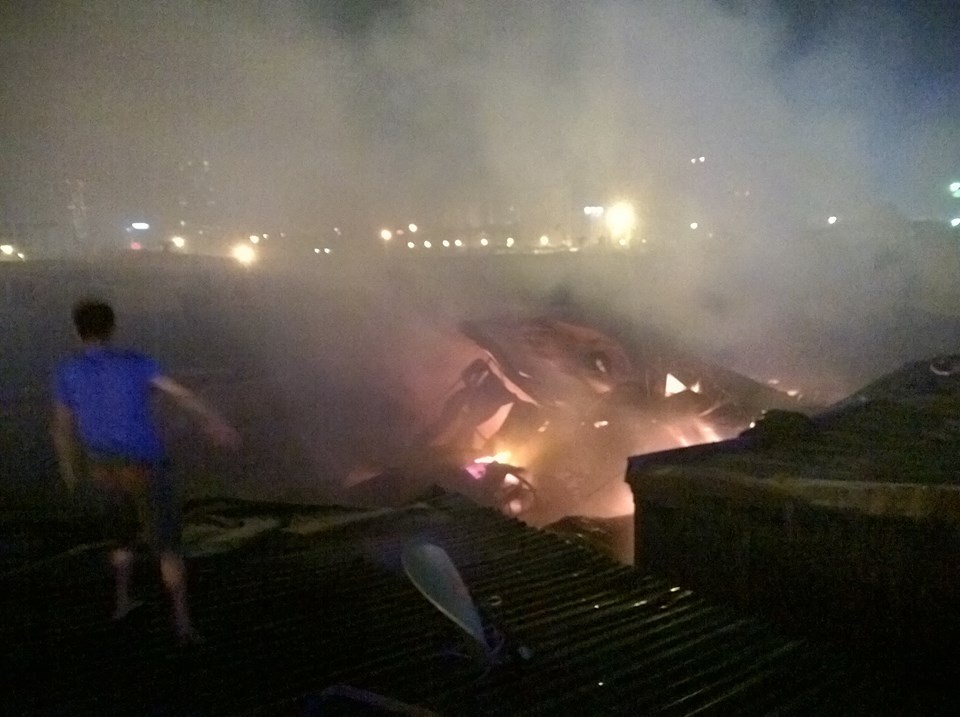 | Hơn 23h, ngọn lửa vẫn bốc cao. Ảnh: otofun. |