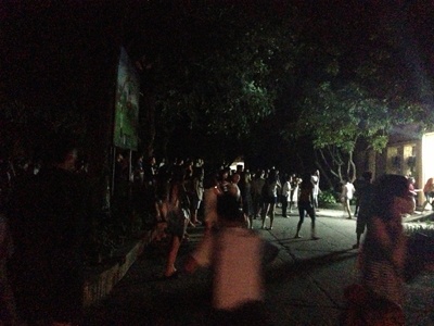 | Hàng trăm sinh viên hoảng loạn chạy xuống sân ký túc xá. |