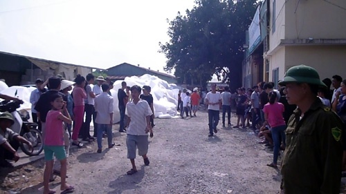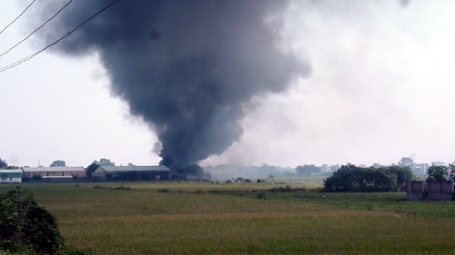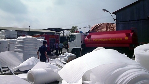 | Đám cháy ở xưởng đệm mút Hà Nội. |