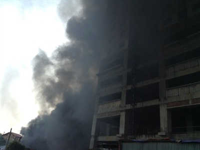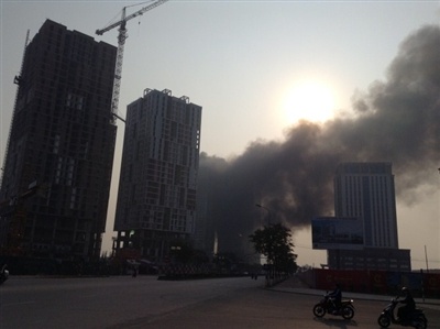 Nhân chứng tại hiện trường cho hay, ngọn lửa bùng lên rất nhanh và dữ dội, tạo ra những cuộn khói dày đặc, bao trùm gần hết tòa nhà cao tầng đang được thi công ngay sát đó.