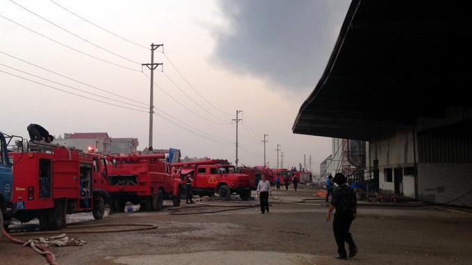 | Ngoài lực lượng gần 10 xe cứu hỏa hiện có, hiện cơ quan chức năng đã điều động thêm 2 xe cứu hỏa tỉnh Bắc Giang sang ứng cứu. |