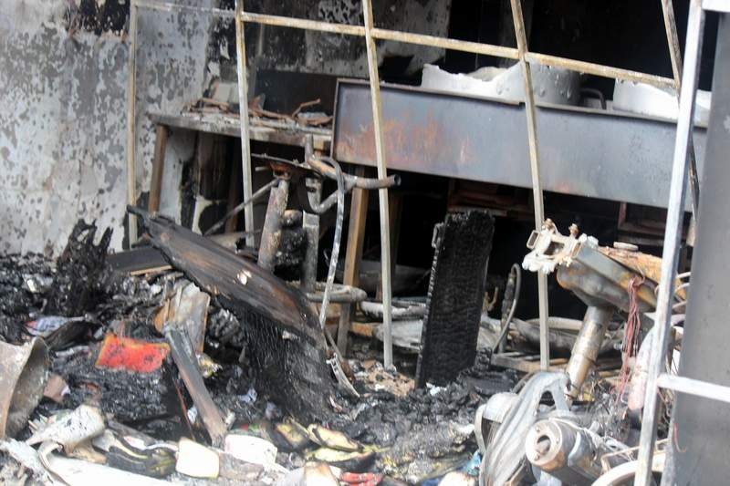 | Nhiều vật dụng đã bị ngọn lửa làm trơ khung, biến dạng, không còn nhận ra hình thù ban đầu |