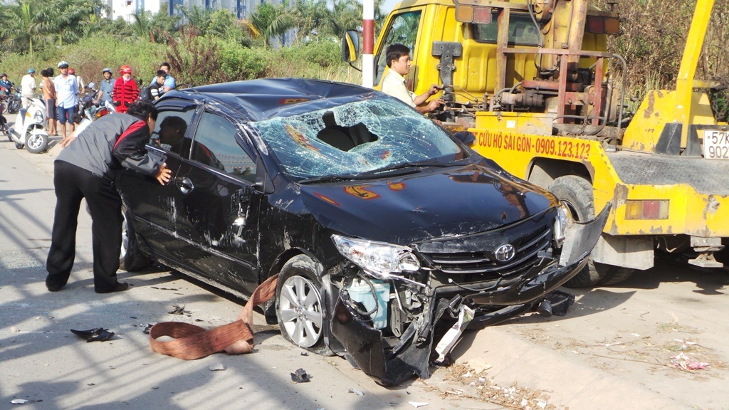 | Khoảng 5h cùng ngày, ôtô mang biển số xanh do tài xế Dương Văn Diện (59 tuổi, ngụ quận 10, TP HCM) điều khiển lưu thông trên đại lộ Võ Văn Kiệt, hướng từ trung tâm thành phố đi quốc lộ 1A. Khi đến cầu Rạch Cây, xe này dính phải bùn nhão nên trượt bánh khiến tài xế mất lái. |